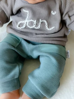 Kolekcija vsebuje osnovne kose oblačil, dodatkov in tekstila za nego otroka. Vsak kos je ročno narejen, nekatere krasijo tudi unikatne vezenine.